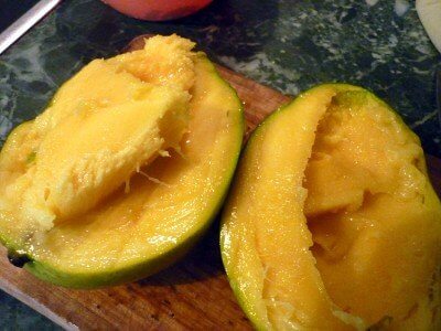 Slicing a mango isn’t easy — the flat pit makes slicing this fruit difficult.