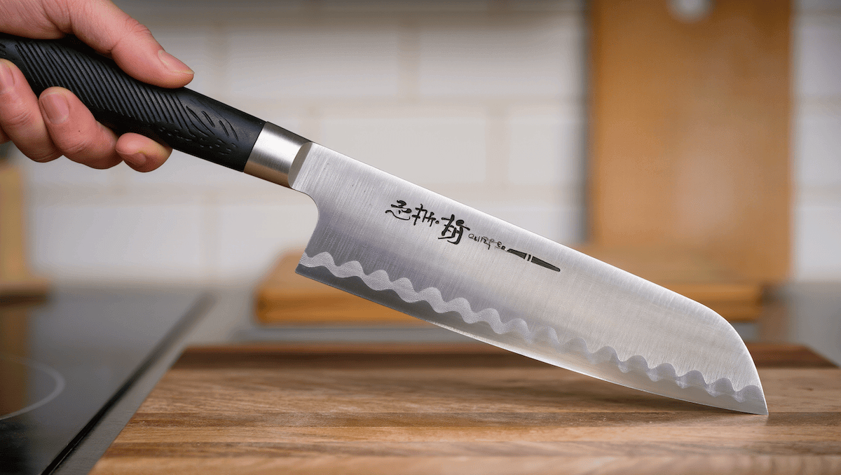 - Special Features: Many modern Santoku knives have a Granton edge (small dimples along the blade) to reduce food sticking while cutting.